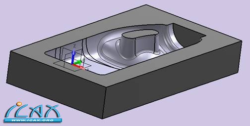 | 瓶子模具数控加工教程 1. 此次要加工的零件为一个模具型腔,如图1所示。 图1 2. 在图形窗口点击鼠标右键,选择加工方案,进入数控加工编程界面。 图2 3. 在加工模具型腔时,工件坐标系应该为于工件的中心,所以在进行数控编程之前需要重新定义左边系。点击方案管理器中的坐标系,将安全高度设为20,进刀退刀高度设为5,自动防碰为10,然后点击创建基准面选项,通过计算可知道工件中心在初始坐标系的坐标为(0,117.5,30),所以可通过XY平面在Y方向偏移117.5mm,从而创建坐标1的基准面。结果如图4所示。 图3 图4 |
