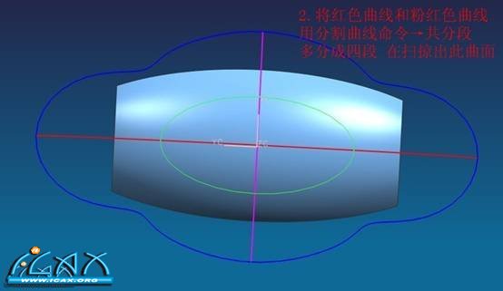 NX曲面造型教程 本课程主要针对初学者面设计的,讲述的是曲面功能的使用,通过一个简单的实例来巩固曲面的功能,曲面在我们的工作中必不可少,特别是“通过曲线网格”这个命令用的频率非常之多,我们一定要熟练掌握,当然UG的曲线及曲面的修剪也较重要,在这个课程当中,学者可以多次用到这些命令,达到熟练的程度,更进一步的来提高自已。 本课程所用到的命令:曲线的创建,分割曲线,扫掠,通过曲线网格,修剪的片体,镜像,片体加厚等命令。 第一步:绘制基本曲线(底面为四个圆弧,交叉的为两个椭圆弧),在两个椭圆弧的交点处绘制一个椭圆 第二步:用分割曲线命令将红色和粉红色曲线分别分成四段,并用扫掠命令得出曲面。 第三步:用修剪的片体命令修剪掉椭圆以外的片体部分 |