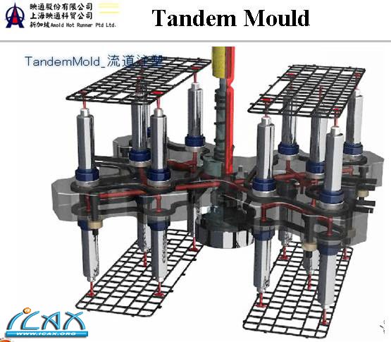 五、热浇道用在Tandem Mould 技术 Tandem Mould(串列式模具)与StackMolud迭层模类似,是将两副相同或相似产品的模具拼合在一起,并有双合模面的设计,在一台注塑机上同时生产。利用A模具内制品的冷却时间来对B模具内制品的注塑成型,且当A模具内制品冷却完成而B模具还在等待冷却时,利用特殊扣件将B模具闭锁,而将A模具开模时取出成形品,如此交替循环,此方式适合壁厚,生产周期长之产品,能提高设备的使用效率。如图13使用Tandem Mould需适度修改射出机之动作流程,机械不需做任何改变,但流道系统却变的较为复杂,需使用热浇道系统之阀浇口设计。才可使不同层之浇口在特定时间点,作开启或关闭动作,能配合各层模具注塑或开模。如图14 图13、Tandem Mould 扣件 图14、Tandem Mould 热浇道布置 六、结论 与冷流道模具相比热流道模具具有许多无可比拟的优点,但也不能忽视热流道模具的缺点,概括起来,一般的热流道模具在使用过程中存在以下缺点:结构及检修复杂、模具费用高、有局部过热的问题,须有好的绝热措施以避免热量散失等问题。 虽然有上述缺点,但是热流道技术之应用可节省塑料缩短制件成型周期,且因塑料之温度在流道系统内得到准确控制,而从而可以得到高质量的零件减少废品率。且无需修剪浇口及回收加工浇道凝料等工序,有利于生产自动化,大幅度提高生产效率。并随着热流道技术的完善发展,扩大射出成型工艺应用范围,还是可享受到热流道所带来大量的好处。 联络人:林宗圣 电话:0922849613 电子信箱:lintrang@hotmail.com.tw 七、参考文献 1. 徐佩弦译, Damiel Frenkler and HenrykZawiistowski 着”Hot Runners in InjctionMoulds”,化学工业出版社,北京,2005 年1 月 2. 模具装饰信息网 //www.chinainmould.com/2008/1229/252.html3. 朱玉斌, “Tandem Mould 一机双模技术” ,广州博创机械有限公司技术创新中心 4. Dr. Christoph Jaroschek, “最新TandemMould(纵列式模具)高效能射出成型技术” ,徳麦贸易有限公司 / T/Mould GmbH+CO KG 八、谢志 感谢科盛科技股份有限公司提供Moldex3D 之分析数据与图片。 |