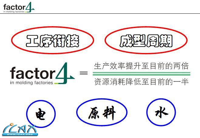 | 塑料成型工厂之绿色生产自动化技术探讨 Automation technologies of green production in Plastic molding factories 徐尉恺1、庄靓睿2 Hsu Wei-Kai, Zhuang Liang-Rui 1 台湾松井国际股份有限公司 Taiwan Matsui Co., Ltd 2 上海松井机械有限公司 Shanghai Matsui Machinery Co., Ltd 中文摘要 如果不注重环保,世界肯定会变得很糟糕。别的不说,光是生存空间紧迫、人类变成孤儿和生活环境恶劣,就够我们大家受的了。 首先是,如果不注重环保,工业三废和生活三废就会使温室效应变得更为严重。更为可怕的是,还会使两极的冰山消融,使海平面上升淹没陆地,向人类争夺生存空间——因为我们人类还没有找到 第二个适合人类生存的星球; 其次是,如果不注重环保,那么就会使森林等绿地日益减少,野生动物植物就会灭绝。到时候我们人类就会变成地球的弃儿,成为生命的孤儿; 第三是,日益恶化的环境问题还会使我们的生活环境变得更加糟糕,以致遭受大自然的惩罚。比如说,酸雨、沙尘暴等等。那将是不堪设想的…… 如何在塑料成型工厂实现节能降耗、清洁环保的绿色生产? 即便在日常努力消除浪费的塑料成型工厂现场,从资源生产性的观点上看,还是存在着大量的资源浪费。对此,我们提出以资源生产率为量化指标的「factor4」理念。该理念的核心思想是:用现在一半的资源,创造出双倍的产能,从而实现4 倍的财富价值。 以塑料成型工厂的资源生产性为课题,为了消除「能源浪费」、「树脂浪费」、「水资源浪费」这3大浪费,在对工厂能耗现状进行诊断的基础上,以提高资源生产率为目标,开发最新的绿色生产自动化机器技术作为解决方案,最终实现塑料成型工厂之真正的绿色生产。 关键词: 绿色生产,资源浪费,Factor4 一、前言 塑料成型工厂有多少浪费?大多数塑料成型 工厂,每天都为了提高效率进行着改善活动,以求彻底杜绝浪费。像这样的塑料成型工厂,现在还会产生那么多浪费吗? 我们就以塑料注塑成型工艺中所需要的能源为例来进行分析。 实际上,塑料注塑成型工艺真正最低限度所需要的,仅仅是「将常温塑料加热到溶解温度的能源」和「将溶解后的塑料注入到模具中的能源」。 除此以外,都是因某些其他需要而额外消耗的能源。比如,如果要将塑料在凝固时释放的热量通过水等媒介流向室外,就另外需要水循环、以及再次冷却的能源。在大多数情况下,塑料成型工厂实际消耗的能源比最低限度所需要的能源多出了几倍。 比如,人们对塑料成型工厂的感觉,就是「炎热」,而且觉得「理所当然」。但是工厂现场的炎热,意味着有那么多的能源被无谓释放了。可以说,塑料成型工厂的炎热正象征着资源浪费!又比如,成型时出现的料棒,即使是之后被回收使用,也会因再次溶解而使用多余的能源。如果没有被回收使用,那就产生更大的浪费。还有,在冬季等比较寒冷的时期,有时能看到从冷却塔散发出像水蒸气般水被蒸发的景象,这也是大量浪费的象征。其实在冬天,即使不这么做,水也能自然冷却。 看来,即使在为了彻底消除浪费而每天都在努力的塑料成型工厂,从资源生产性的观点看,还是存在着非常多的浪费。 换种说法,至今为止一提到工厂效率,主要考虑的都是如何提高劳动生产性(即,如何用少量人员增加生产量)。但是今后,在节能降耗、清洁环保的绿色生产前提下,以提高资源生产性(即,如何用少量资源增加生产量)为目标的时代已经到来了。 二、factor4 之理念 所谓「factor 4」,是受到Club of Rome 的报告书中所提到的人类危机的影响,在1995 年由Amory・B・Robins 等人提倡的想法。 用一句话概括「factor 4」,就是通过将全球财富提高2 倍,同时将资源消费减半,从而把资源生产性(从一定量的资源中能创造出多少财富与服务)提高至4 倍。 「factor 4」报告书的主要主张如下: 为了克服全球贫困、保持财富与地球环境的平衡,至少需要将资源生产性提高4 倍(factor4)。反过来说,资源生产性提高4 倍后,人类就能得到长期保持财富与环境平衡的基础。将资源生产性提高4 倍,很多领域在技术方面已经是可行的,而且也带来了很多经济收益。 在此报告书中,还举出了实现factor 4 后的50 个事例,证明了factor 4 在很多领域都是可能实现的,在经济性上也是相当可观的。 除了factor 4 以外,还有factor 10 这样的想法,由Schmidt・Blake 等人主张。那是指为了实现全球factor 4,需要在美国、欧洲、日本等发达国家实现factor10(也就是将资源生产性提高至10 倍)。 针对塑料成型工厂,我们主张以「factor 4」为愿景目标,简明表达为「生产效率提升至2 倍」÷「资源消耗降低至1/2」的定义公式(图1)。以此定义公式作为依据,可以从‘缩短成型周期’、‘缩短工序衔接时间’、‘提高塑件质量’、‘提高原料利用率’、‘消除电能浪费’、‘消除水资源浪费’等多个方向,展开塑料成型工厂绿色生产自动化技术的应用探索。 比如,为了消除「能源浪费」、「树脂浪费」、「水资源浪费」这3 大浪费,可以先进行工厂能耗诊断,然后开发相应的可以降耗节能的自动化机器,从而提出改善工厂资源生产性的提案。 下文例举阐述2 件提案加以说明。 图1、塑料成型工厂factor4 的定义公式 |