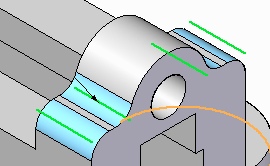 倒圆允许您将锐利的模型边替换为平滑的倒圆表面,以改进模型外观或功能。倒圆是基于边的,这意味着只能对边进行倒圆。 在顺序建模环境中,可使用恒定倒圆半径、可变半径或二者的组合。 在同步建模环境中使用“倒圆”命令,只能对零件的边使用恒定半径倒圆。 在顺序建模环境中使用倒圆,可在边之间、面之间或二者的组合之间倒圆。 在同步环境中使用“倒圆”命令,可以创建可变半径倒圆、 面之间的倒圆、 或曲面主体之间的倒圆。 可执行整个型腔倒圆。换言之,可以创建倒圆半径大于槽深度的倒圆。 借助倒圆,您可以创建半径小于或等于槽深度的倒圆。但是,当半径变得大于槽深度时,圆角将会失败。 复杂倒圆流程 步骤 1. 步骤 2. 在“倒圆”命令条上,使用“选择”菜单 (A) 指定要对其执行倒圆操作的元素(链、边/拐角、面、环、所有圆角或所有倒圆)。 步骤 3. 步骤 4. 步骤 5. 完成此公共半径的设置时右键单击。这会将所有预览几何体转换为完成的几何体。该命令将保持活动状态。 步骤 6. 步骤 7. 步骤 8. 按 Esc 键或选取“选择”命令可结束倒圆命令。 |