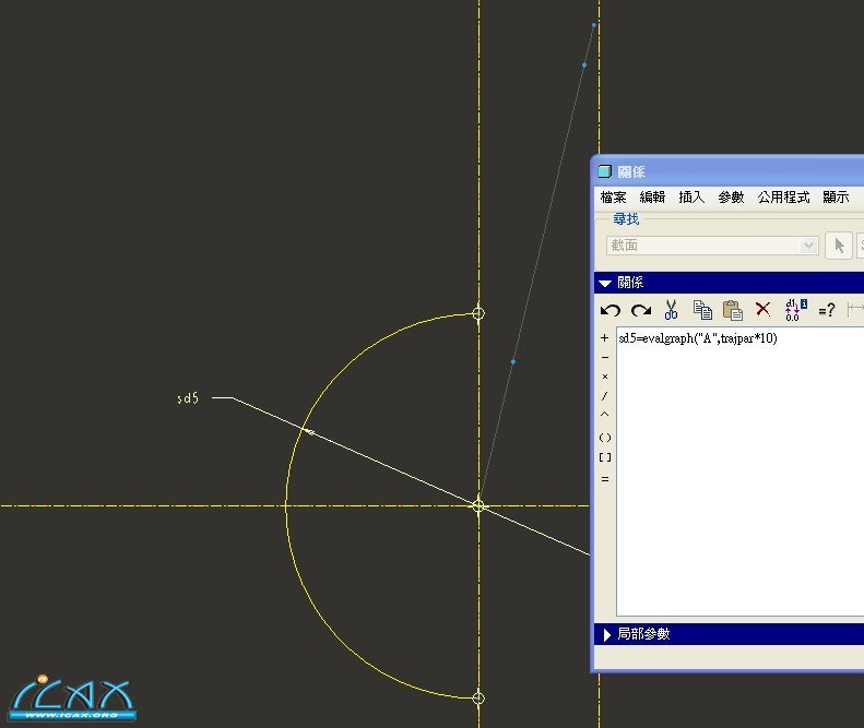 第一步用图形命令做一个。(图形中是用样条线做的)—如图。 第二步在草绘一个如图。注意中间要打断成四断。(这是轨迹线) 第三步在点螺旋扫描曲面-可变的如图。 第四步进入草绘轨迹线,把刚画好的提出来。这也可以一步做。 第五步编辑4点牙距如图。 第六步 进入草绘截面。如图 关系式:sd5=evalgraph("A",trajpar*10) sd5为要变尺寸。evalgraph以画形 ,("A",为画形A。(在做图形可以命名为A)trajpar这是将画形看做1.*10这是图形的长度。(如果是5的话就只有图形一半。)这个是和图形的高度一样就可以了。 第七步 最后图 |