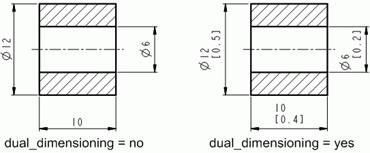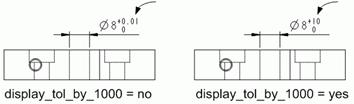 ‹dim_text_gap:尺寸文字和尺寸线之间的距离。 ‹display_tol_by_1000:非角度尺寸之公差以乘1000显示,如下图所示,当display_tol_by_1000设为yes时,公差值为乘以1000。 ‹draft_scale:在工程图中绘制二维线条(见本书第6章)时,线条长度与实际长度的比例,其默认值为1。 ‹draw_ang_units:视图中角度尺寸的显示格式,如下图所示,当draw_ang_units设为ang_deg时显示度,当draw_ang_units设为ang_min时显示度和分,当draw_ang_units设为ang_sec时显示度、分和秒。 ‹draw_ang_unit_trail_zeros:角度尺寸尾数为零时的显示方式。若设为yes,则以度/分/秒格式显示角度尺寸时,删除尾数的零(根据ANSI标准);若设为no,则角度尺寸或公差不显示尾数的零。 ‹draw_arrow_length:设置箭头长度,CNS规定为3~4mm。 ‹draw_arrow_style:设置箭头型式,其选项如下图所示。 ‹draw_arrow_width:设置箭头宽度,CNS规定:箭头夹角20度,若箭头长度为3,则此项设置约为1。 ‹drawing_text_height:设置文字高度,CNS规定尺寸字高为2.5mm。 ‹drawing_unit:设置工程图所使用的单位,包括mm,inch,foot,cm及m,CNS-China.dtl使用mm。 ‹dual_digits_diff:控制主要尺寸和辅助尺寸之间小数点右边的小数字数差。 ‹dual_dimensioning:控制尺寸显示的格式,决定是否使用双重尺寸的显示方式,如下图所示,当dual_dimensioning设为no时显示单一尺寸,当ual_dimensioning设为primary[secondary]时显示主单位和次单位(此处的主单位为mm,次单位为inch)。 |