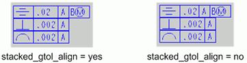 ‹radial_dimension_display:径向尺寸显示成ASME、ISO或JIS标准格式,但text_orientation设为「水平的」(horizontal)时除外。选项如下:(1)std_asme:以美国机械工程师协会(ASME)格式显示径向尺寸、(2)std_iso:以国际标准组织(ISO)格式显示径向尺寸、(3)std_jis:以日本工业规格(JIS)格式显示径向尺寸。 ‹radial_pattern_axis_circle:设置径向数组特征中,垂直于屏幕的旋转轴显示模式,如下图所示,当radial_pattern_axis_circle设为no时显示个别中心线,当radial_pattern_axis_circle设为yes时出现一个圆形共享轴,且中心线穿透旋转数组的中心。 ‹remove_cosms_from_xsecs:创建全剖面时,利用参数remove_cosms_from_xsecs控制基准曲线和修饰性特征(如螺纹、压花等,是使用Insert(插入)/Cosmetic(修饰)→Sketch(草绘)所创建的特征)的显示。其选项包括:(1)total:从剖面视图中,删除完全位在剖切平面前面的基准曲线或修饰性特征,只有当这些特征与该剖切平面相交时,才能完整显示、(2)all:所有类型的剖面视图皆基准曲线和修饰性特征、(3)none:显示所有基准曲线和修饰性特征。 ‹show_quilts_in_total_xsecs:在剖视图中,是否将曲面包含在剖面的剖切过程中。若设为yes,则创建剖面时,曲面会被进行剖切;若设为no,则创建剖面时,曲面不会被进行剖切。 ‹shrinkage_value_display:收缩量的数值显示方式(例如塑模产品的缩水率)。选项包括:(1)percent_shrink:显示收缩的百分率、(2)final_value:显示收缩后的尺寸数值。 ‹stacked_gtol_align:几何公差迭在一起时,是否要对齐,如下图所示。 ‹tan_edge_display_for_new_views:指定新加入之视图的相切边显示型式,其选项包括:default,tan_solid,no_disp_tan,tan_ctrln,tan_phantom,tan_dimmed,save_environment,详细说明请参考本书的图4-15。 ‹text_orientation:控制尺寸文字的方向,如下图所示,当text_orientation设为horizontal时,文字平行于尺寸线,当text_orientation设为parallel时,所有尺寸文字为水平显示,当text_orientation设为parallel_diam_horiz时,除直径尺寸外的所有尺寸平行于尺寸线,以及水平显示直径尺寸,当text_orientation设为iso_parallel_diam_horiz时,除直径尺寸之外的所有尺寸显示为平行于尺寸线。 ‹text_thickness:设置文字笔画的宽度,默认值为0,亦即使用CNS的制式规定:拉丁字母及数字的粗细为字高的1/10,中文的粗细为字高的1/8。 ‹text_width_factor:设置文字宽度和高度的比例,默认值为0.8。当text_width_factor大于0.8时文字较宽,当text_width_factor小于0.8时文字较窄,如下图所示。 ‹thread_standard:控制轴垂直于屏幕的螺纹孔的显示方式,其主要选项包括:螺纹孔显示成圆弧(ISO标准)、螺纹孔显示成圆(ANSI标准)、在螺纹孔内显示成隐藏线(JIS标准)。 |
