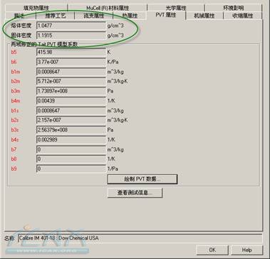 图14.6  PC材料的PVT属性参数                                图14.7  完成材料选择