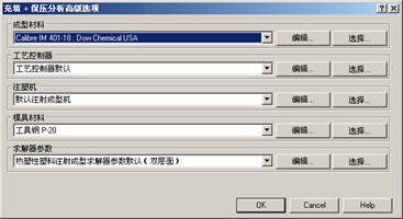单击【高级选项】按钮,弹出【充填+保压分析高级选项】对话框,如图14.12所示。