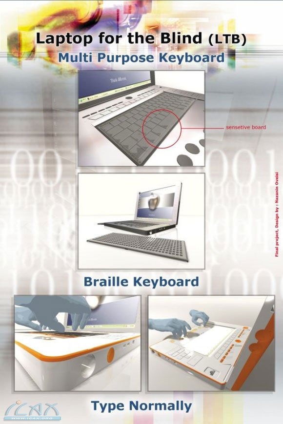 目前有太多的创新理念在为残障人士而设计,让他们也能像正常人一样独立的生活,电脑在日常生活中,已经占据了很重要的位置,人们越来越依赖于它,没有电脑是多么的不方便,盲人在使用电脑方面 ,在以前可以说是没有可能。Nazanin Oveisi小组开发了一套转为视觉障碍者专用的笔记本电脑,这款笔记本电脑配备了一个多功能盲文键盘,上面有盲文标识,完全按照盲人的需求进行制造,还可以进行手写,键盘可以把盲人输入的字符通过传声器传出来,减少了输入错误,采用三维模拟系统,把盲人写的盲文进行处理,生成文字,键盘使用有机玻璃、划痕和激光切割技术,提高了键盘的使用寿命,使用者可以利用这款产品,轻松与朋友联系,了解外界事物,过上正常的生活,该产品的研发是对视觉的一次挑战,也是科技进步的结果。 |