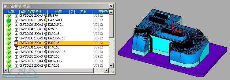 像笔记本电脑这样的塑料件模具,尤其是A、B、C、D等笔记本大件,在模具加工时一套模具需要 200多个电极。现在工程师使用 CimatronE软件一人一天大约能设计并编程达70-80个电极,有时甚至能完成超过 100个电极。他们软件操作非常熟练,基本使用快捷键调用指令,能根据实际模仁的造型情况选择使用 CimatronE实体拆电极还是曲面拆电极的方法。 CimatronE的电极出图模板和批量出图功能,也大大方便了客户出图。设计人员在 CimatronE中定制了自己公司的图纸样板,一键式批量输出所有电极。 值得一提的是,由于采用 CimatronE进行一体化模具设计制造,客户还能采用了并行工程的作业模式。即当模具设计开始 2天后,电极就可以开始设计了,尽管此时公母模仁并未完成。这样的工作模式同时也能应用到备料和线割环节,这样就避免了所有工作都要等到模具设计彻底完成才开始进行,大大缩短了模具交付周期。 NC编程时通过调用加工模板,几分钟就快速地生成了 NC程序。 模具厂还使用了经过二次开发的后处理程序实现串刀加工。现场加工时机台上有 6个电极夹头,能同时装夹 6个电极一起加工。作业员将 6个一起装夹好,利用这特殊的程序将这 6个电极的 6套 NC程序自动组合排列,将其中相同刀具的刀路 G代码自动合并成一条程序。现场加工时一次装刀就能分别加工6个电极的 6条刀路,这样就省去了 5次换刀、对刀的时间。 结合模具厂使用的带电极库的自动数控火花机,Cimatron还利用 EDM设置和 EDM报告的功能快速地帮助客户自动生成数控火花代码及换电极代码。这一操作只需 2分钟的时间,而之前客户手动编写火花代码需要大约 2个小时。代码生成后,只要作业员将电极按顺序放入机床电极库,机床就能读取 Cimatron的EDM数控代码进行放电,并在放完一个电极后自动从电极库中调用下一个电极继续进行。放电开始后的整个过程几乎不需要人工看守,大大节省了人力成本和生产资源。 综上,客户在采用了 CimatronE的电极解决方案以及自身技术的改进后,生产效率有了大大提升,相关成本也大大降低。 |