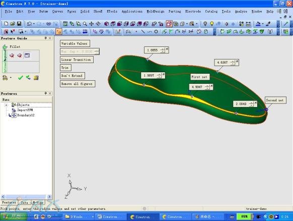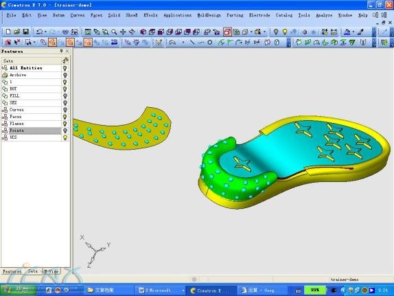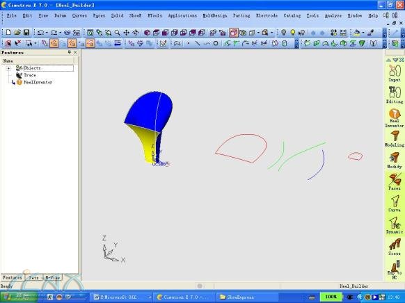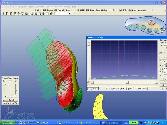前言: 2005年9月27日,Cimatron E7鞋模制造模组ShoeExpress发布了,这个专为鞋模设计的模组给广大的设计者带来了无比的喜悦。Shoeexpress是由著名的鞋业制造王国意大利microsystem公司开发的模组,它结合了意大利鞋业制造几十名资深工程师丰富的制鞋经验。ShoeExpress模组由四个模块组成,Design鞋底设计、Heel Design鞋跟设计、Sole morphing鞋底置换、Fusion熔模设计,整个模组贯穿了鞋业设计的全过程,大大地提高鞋业设计的效率并降低工作者的劳动强度。 一.Design鞋底设计: 以前,在设计鞋底时通常会先绘制好2D图,再由2D曲线编辑成空间曲线。在整个过程中要花费许多时间布置空间曲线,再通过空间曲线构建3D模型。现在,通过Design鞋底设计,就可以更快地构建空间曲线和空间曲面,或者在不完整的2D图上直接构建3D模型。下面通过实例具体讲述(TPR模型): 通过下面一条底部曲线扫掠出一个大面,再用一条模口线和侧面特征线利用Side surface指令构造中底侧面。这样的做法比传统的做法灵活方便,可以任意增加剖面线,并且可以根据要求调整每一条剖面线的角度和修改其形状,可以使设计者完全按照自已的想法构造,这样构造出来的曲面自然最接近最初的样品模型。 曲线建成后就可以用Cimatron E的曲面造型命令Blend或者Mesh构造侧面,因为曲线较多所以得到的侧面曲面会十分平顺和接近样品。 用Trim修剪命令,将曲面修剪好,再用Fillet曲面倒角命令按照要求用变化圆角倒出圆角,这样一个中底基本曲面就完成了。 现在可以构造附在中底上的大底了,将大底的特征线投影在中底上,再用这些特征线构造大底的外轮廓线,整个过程跟上面的做法相似,不过底部花纹和侧面花纹往往是整个设计的难点,以往的做法都是通过一些空间曲线来构面。这里我会向大家介绍另一种方法,因为现在Cimatron E有较强的实体功能,底部花纹用实体构造,这样运用其拔模角功能便可以做出花纹的斜度,通过布尔运算方便切割物体和简易的倒圆角功能;其它斜度较大的花纹可以Unfold将曲面剪平成平面,然后在剪平的平面上构造花纹,因此比直接在曲面上构造花纹方便得多了;接着用Wrap命令把花纹贴上原来的曲面上,原来花费时间较多的花纹建造现在就可以较快地构造出来啦;最后通过Under Surface命令直接把内仁底面做出来。这样一个完整的鞋底模就完成了。 往下就要进行批量生产,ShoeExpress提供了实用的级放功能可以划分出几个区域按不同的级放比例级放,并能锁定一些圆形、商标(LOGO)等特征,并能以整数、1/2 、1/4,三种规格级放来满足不同国家的需求,整套码数级放也只需要几分钟。 在上述的例子中,不难发现 ShoeExpress的鞋底设计功能十分简单易用,能让设计者随心所欲地自由设计。除此以外,Cimatron E还有强大曲线修改功能(Modify Cure)和曲面修改功能(Deform Face、By Sketcher等),方便设计者修改模型。 二.Sole morphing鞋底置换: 做好的许多3D模型有时候都要进行一些修改,鞋子的模口线变更就更加普遍,在这里提供了一个简单方便快捷的模口板线修改功能,它可以根据两条模口线的差异直接修改3D模型,而且还可以锁定一些特征:例如LOGO等,这样就大大减少修改3D模型的工作量。 三.Heel Design 鞋跟设计: 针对目前时尚流行的女装鞋的鞋跟提供专业完整的设计方案模块,让广大的鞋业设计者在较短的时间里简捷地设计出各种各样时尚的鞋跟。下面以具体的实例介绍这个模块: 通过样板图片可以用Trace绘图功能描绘出一些特征曲线,用这个功能绘制曲线不但可以用鼠标控制还可以用手绘板控制。 通过上面绘制的曲线就可以通过Shoeexpress的鞋跟设计功能设计鞋跟了。打开Heel Inventor命令,进入鞋模设计专用界面,在Heel Inventor中进入鞋跟设计导向对话框,根据图文并茂的导向指引框按照要求一步一步地把鞋跟特征线选上和设置好各个参数,一个基本的鞋跟外形设计就自动完成了。 在基本完成的外形图上可以进一步编辑,通过线条的点和切向线等等编辑方法达到理想的鞋跟模型。在完成一系列的编辑后,Heel Inventor退出到Cimatron界面里周边的曲面自动生成,不用再通过曲面指令构造曲面,大大减少设计时间。 再通过Cimatron E的曲面设计命令Bounded边界曲面,把上下的面建构好,这样一个鞋跟设计完成了。当然要设计一个有时尚特色的鞋跟还要在周边设计一些花纹图案,那样可以运用Unfold、Wrap功能轻易做到。首先把3D曲面用Unfold展开成平面,在平面上布上一些花纹图案再通过Wrap粘贴上去,这样从2D到3D的设计大大减少设计者的工作量。 经过简单的几步操作,一只十分美观的鞋跟模型就完成了。接下来就可以对这款鞋跟进行批量生产,在这里Shoeexpress为鞋跟批量生产提供了专业的级放功能,可以在极短的时间内进行大批量生产。 四.Fusion熔模设计: 熔模设计是一种应用于简单的鞋模快速设计功能,它通过几条特征线就可以产生一整套鞋子模具,包括上、下模和内仁。这种功能主要应用于女装鞋的鞋底等较简单的鞋模设计。 总结: 通过以上的几个实例介绍,可以了解到Cimatron E的ShoeExpress在鞋模造型方面十分方便快速,它所提供的所有设计概念是完全体现了鞋模设计的特点,保证设计的自由性和准确性。Cimatron E强大的曲面和实体混合造型功能使鞋模设计更加灵活简易,修改过的3D模型还可以直接输出2D图并可以自动更新2D图,实现部门之间和工厂之间的