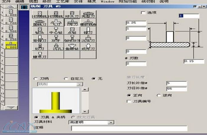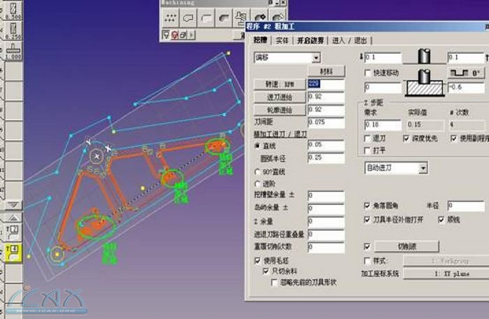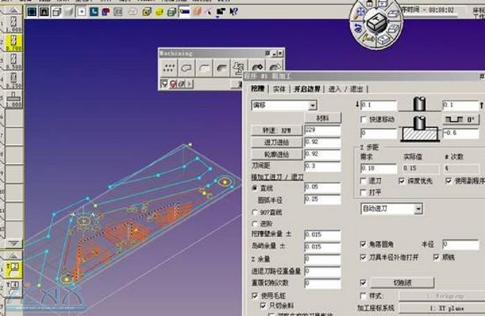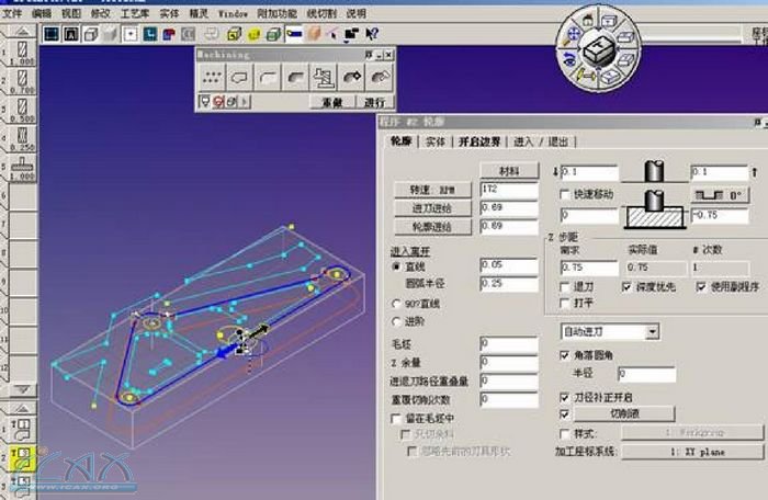 (上图)成型零件效果图 首先建立文档 (可自行作图,也支持外界导入)。本例题采用英寸制 上面对话框:在机器栏对应的是各种不同的加工环境(MDD)。此零件我们采用 3轴立式加工中心。 下面对话框:设置毛坯,刀具换刀点和安全平面 打开刀具对话框,定义本次加工所要使用的刀具,分别定义粗铣刀T1:D1 T2:D0.7,精铣刀T4:D0.25和T5:T型刀 D1 完成此步骤后,把轮廓策略和刀具拖至工序栏,便会自动弹出对话框,拾取所画走刀路线,点击线上圆环,确认切削位置。在编程对话框,设置进刀距离0.1,切深-0.75,Z步距 0.25,黑色和白色图标分别可以拖动,白色标记用来确定开始车削位置,黑色标记用来确定结束车削的位置,控制起来相当灵活。 轮廓精铣:采用T3刀具,只需把更换的刀具拖至工序栏,轮廓编程对话框会继承前面的程序参数,更改余量为 0。 内腔开粗:T2刀具,采用粗加工策略,GibbsCAM2.5轴也是可以继承毛坯的,我们选择使用毛坯,就会给下刀加工留下可继承的残料。参数设置余量0.015,切深-0.6,Z步距0.18。 GibbsCAM仿真加工:仿真可以很直接的预览零件加工效果,检查零件是否过切,仿真下拉菜单还有丰富的仿真辅助功能,比如加工时间,颜色,物体透明,以及加载机床进行更理想的仿真等等。 以上是 GibbsCAM对一典型线零件的 2.5轴铣加工,以便使大家了解 GibbsCAM除车铣复合以外,2.5轴铣加工同样灵便,以后我们还会依次介绍 3轴,4轴和 5轴的铣加工功能。 |