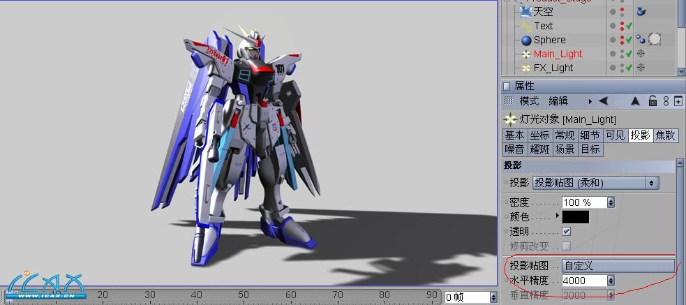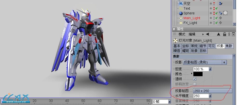 三、阴影 在工设渲染中,阴影也同样重样。一个好的阴影可以产生很好的光影效果,产生良好的空间层次感,使渲染变得更加真实。 下面来讲一下c4d中的各种阴影。 C4d中灯光的阴影类型有:无、投影贴图(柔和)、光线跟踪(强烈)、区域投影 1、 1、无阴影 无阴影这个没什么好说的,就是灯光不产生阴影。通常辅助灯光都会选这个。 1、 投影贴图(柔和) 这种贴图会产生一个较为模糊柔和的阴影。其模糊程度由灯光属性中“投影”选项卡中的“投影贴图”与精度来决定。 下图是“投影贴图”为250x250,精度为250时渲染效果。渲染用时为19s 下图则是大小为1000x1000,精度为1000时的效果。渲染用时为19s 下图为大小为水平精度为4000,垂直精度为2000时的效果,渲染用时为19s 由上面三幅图可见,所设的阴影贴图越大,精度越高,所得到的阴影也就越为清晰。但阴影在边缘处还是有着比较柔和的过渡。 |