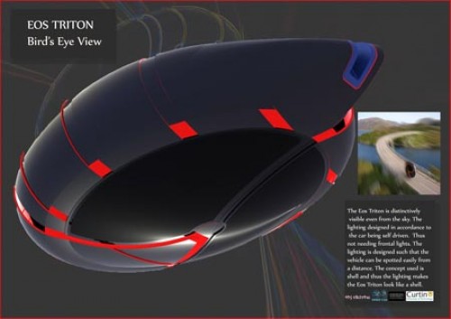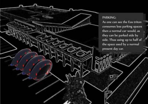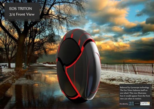 EOS Triton是为2025年设计的个人交通工具,它的设计灵感来自螺旋的海螺,单轮的设计更节省了行车以及停车的空间,自身具有平衡感应系统。而且它的智能水平相当高,你只要输入目的地,不需要驾驶,它就可以自动行驶,而在这个过程里,你需要做的就是休息或者网上冲浪什么的。那我的驾照不是白学了么。。。 |
