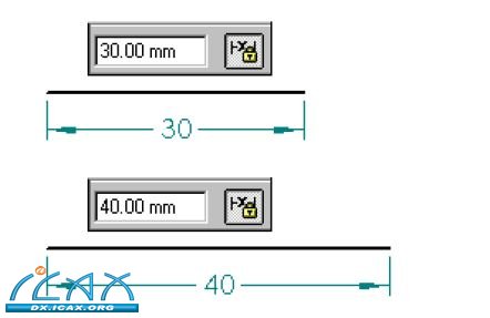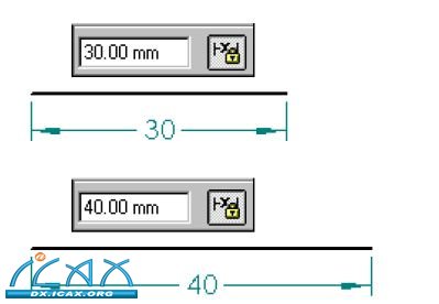 解锁尺寸的标注值由其指向的元素控制,或由用户定义的公式或变量控制。如果这个元素、公式或变量改变,尺寸标注就会随之更新。