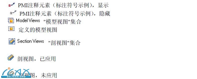 • 在定义PMI 模型视图时,软件将其名称添加到Model Views(模型视图)集合中。