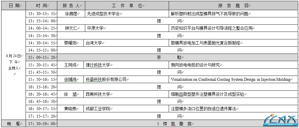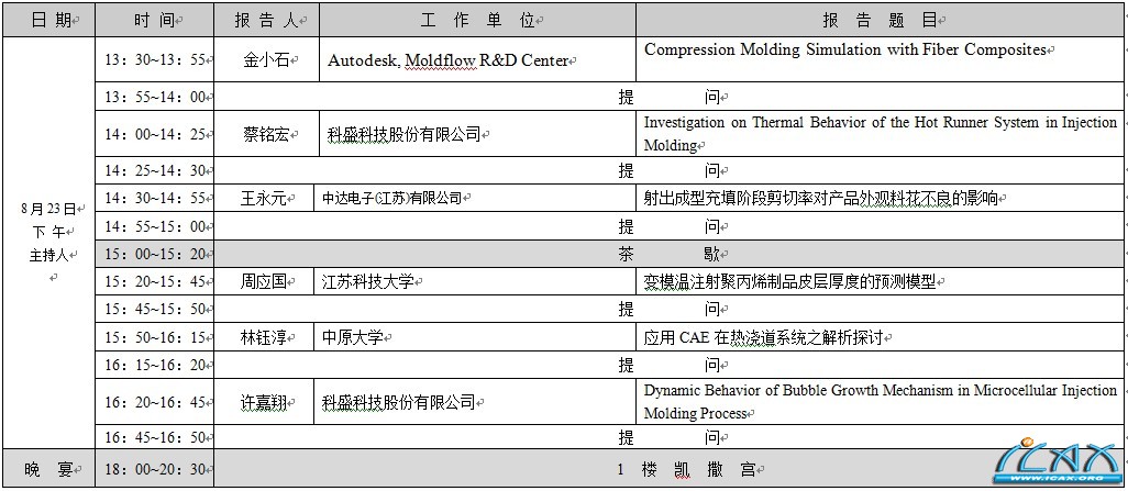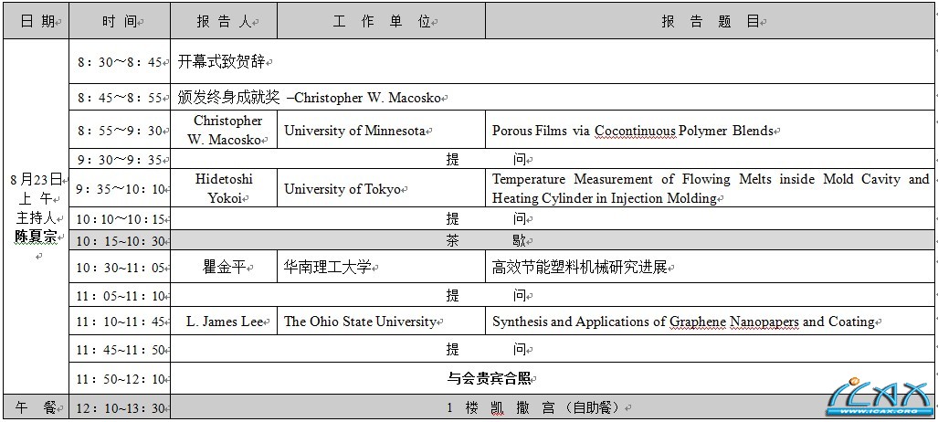 各院校、企事业单位: 先进成型与材料加工技术国际研讨会是由台湾中原大学、香港科技大学、郑州大学等单位联合发起的国际性的年度学术会议,迄今已举行了八届,分别在郑州大学(2003)、西安交通大学(2005)、华东理工大学(2006)、华南理工大学(2007)、北京化工大学(2008)、常州武进区政府(2009)、华中科技大学(2010)、青岛科技大学(2011黄海饭店)召开。 经先进成型技术学会(SAMT)理监事会决议,2012年先进成型与材料加工技术国际研讨会由浙江大学等单位主办,并由该校孙优贤院士担任大会荣誉主席,将于2012年8月22-24日在杭州市召开。 大会将颁终身成就奖给美国明尼苏达大学(University of Minnesota)化学工程与材料科学系(Department of Chemical Engineering and Materials Science)的Professor Christopher W. Macosko教授,并请其作主题演讲。 此次会议将有众多两岸三地及日本、美国、欧洲等专家及学者菁英与会,针对汽车、家电、电子、医疗等領域所用材料改性、模具成型、成型模拟、成型暨周边设备及过程数据采集和监控等新观念及新技术进行交流,并期望通过本会议进一步提升两岸三地之成型模具与设备、 聚合物及复合材料的先进制造技术等的应用水平。 以真正促进两岸三地的科技进步与行业发展。 此次大会另一特色是以日本为主的绿色成型方案联盟(Association of Green Molding Solution, ASGM)亦将提供系列高效节能与高附加价值的成型技术讲题。 热诚欢迎全球各地学术界、企业界同仁们积极参与! 大会宗旨: 加强全球在先进成型与材料加工等方面的学术交流与技术合作。 大会主题: 1.汽车、家电塑料部件先进成型新工艺(超临界微发泡成型技术;高光塑件技术) 2.材料成型模拟技术 3.IMD和OMD新工艺 4.模具制造新技术 5.聚合物材料改性技术 6. 先进成型工艺相关机械设备节能新工艺 会议时间: 2012年8月22日报到,23日~ 24日研讨会 会议地点: 杭州花港海航度假酒店(浙江省杭州市杨公堤1号) 大 会 主 会 场 报 告 I/(会场:8楼花港厅) ICAMTMP'12 分 会 场 I(先进成型工艺与设备)/会场:3楼环碧厅 ICAMTMP'12 分 会 场 II(成型制程模拟)/会场:3楼桂雨厅 ICAMTMP'12 分 会 场 III(材料制备与性能)/会场:3楼云栖厅 ICAMTMP'12大 会 主 会 场 报 告 II /(会场:8楼花港厅) ICAMTMP'12 分 会 场 I(模具设计与制造技术)/会场:3楼环碧厅 ICAMTMP'12 分 会 场 II(先进成型工艺与设备)/会场:3楼桂雨厅 |