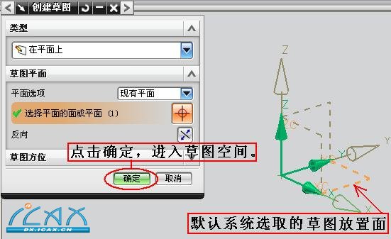 步骤一:选择菜单插入→草图。弹出如下对话框,点击确定进入草图空间。