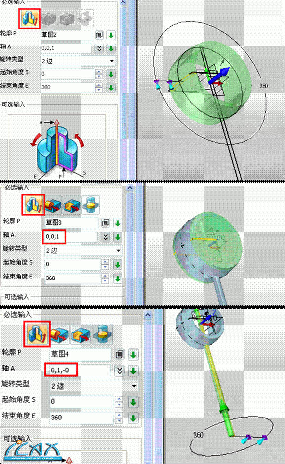 此次邀请了中望3D2012寻找童年惊喜的得奖者分享其CAD设计作品——拨浪鼓的三维CAD作品。拨浪鼓的CAD设计主要由鼓身、鼓面、鼓锤、鼓柄等四部分构成,通过中望3D的常用旋转工具便可以快速完成CAD设计,如同孩子搭积木一样简单、方便、直观,并且中望3D易学易用的特点,可以帮助初学者快速掌握三维CAD设计技巧。接下来将为大家介绍拨浪鼓的三维CAD建模思路: 第一步:绘制草图 为了直观,笔者把草图集中绘制,尺寸可以自己确定,只要比例适当就可以。 草图一:(鼓的直径)在XY平面插入草图,以坐标原点为圆心作直径为100的圆。这个草图主要作为后面草图位置的参考,也可以不作这个草图。 草图二:(鼓身的截面)在XZ平面插入草图,通过旋转获得鼓的骨架。 草图三:(鼓面的截面)在XZ平面插入草图,两个鼓面对称,同时做出也很方便,通过旋转获得两个鼓面。也可以做出一个鼓面,然后通过镜像得到另一个鼓面,结果是一样的。 草图四:(鼓柄的截面)在XZ平面插入草图,鼓柄纵截面的一半,通过旋转的到圆形棒状鼓柄。 草图五:(固定鼓面的泡钉)在XZ平面插入草图,通过旋转得到泡钉实体,镜像到另一侧鼓面,再阵列到鼓面的周边。 草图六:(固定鼓锤的泡钉)在XZ平面插入草图,通过旋转得到泡钉实体,镜像到鼓的另一侧。 第二步:将草图进行旋转得到实体 六个草图的旋转都很简单,这里就不赘述。详见下列各图。要强调的是各个实体都是独立的实体,必选输入都选第一项基体(红色框部分),这主要是为后续更方便的进行实体着色、面属性设定做准备。 第三步:通过镜像和阵列功能制作泡钉 将鼓的侧面用于固定锤绳的泡钉镜像到另一侧,YZ平面为镜像平面,选中复制。随后将固定鼓面的泡钉镜像到另一侧的鼓面上,XY平面为镜像平面,选中复制。最后将固定鼓面的泡钉进行圆周阵列,参考下图。 第四步:鼓锤与绳的创建 在固定鼓绳的泡钉与鼓面间插入基准面,这个基准面与鼓面相切,在这个基准面插入草图,在鼓锤下垂的方向做一个稍有弯度的曲线,线长约为鼓面半径和鼓的厚度一半的和。 在鼓绳的末端插入基准面,这个基准面与绳的末端垂直,在这个基准面插入草图,在绳的末端做一个互成120度的线长为1的三条直线(这是要做三股的细绳)。退出草图。 进行扫掠,参数及效果如图,然后再进行杆状扫掠,但过滤器要选“边”,这样一个三股绳便完成了。在绳的末端做一个小球做为鼓锤。另一个鼓锤可以把做好的镜像过去或复制移动过去。若要使绳的弯曲状不同,就按上述步骤进行,做成另一个来。 第五步:后期处理渲染 把草图一隐藏或删除。鼓柄和鼓身为木纹,鼓锤为黄色小球,为鼓面添加纹理帖图。最后拨浪鼓的成果图如下。 精美的拨浪鼓三维CAD作品就诞生了,是不是勾起了许多朋友们童年的回忆呢?欢迎大家立即下载中望3D,体验流畅、智能的三维CAD设计。中望3D自带的三维CAD“边学边用”功能,也可以帮助初学者快速入门,制作属于自己的创意三维CAD作品! |