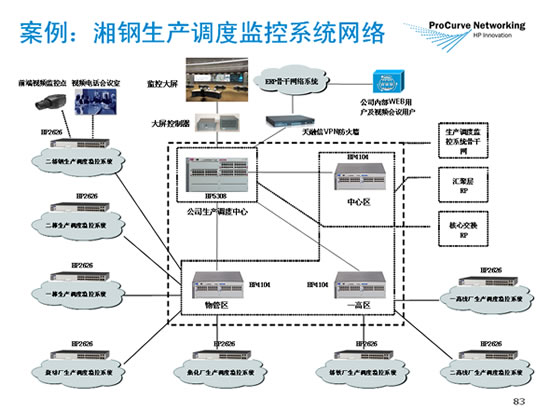 在湘潭钢铁集团有限公司的总监控室里,几名工作人员正在仔细地盯着监控大屏,而每个分屏幕上所反应出的有序工况,又无不让人感到信息化管理的优势与便利。据湘钢监控室的相关负责同志介绍,科学的生产管理方式的确让他们获益匪浅,而被广大职工誉为“第三只眼”的屏幕背后,少不了ProCurve Networking by HP的功劳。 项目背景 湘潭钢铁集团有限公司(简称湘钢)位于湖南省湘潭市岳塘区,始建于1958年,是国内线、棒材和宽厚板专业生产优钢企业之一。占地面积约500平方公顷,地理位置优越。经过40多年的建设,特别是改革开放以来加快发展,湘钢已形成年产钢600万吨的综合生产能力,被***确定为国家要重点抓好的300家大型企业之一。 湘钢有12种产品分别获国家、冶金行业、省优质产品称号。高线盘条和矿用钢丝被评为湖南省名牌产品,均已通过国家产品质量认证;电铲钢丝绳荣获国家银质奖、实物质量“金杯奖”。 产品行销全国及出口到美国、日本、欧洲、韩国,2004年出口线材居全国第一。可见,具有如此规模和行业影响力的企业,在生产调度上不仅不能有半点儿马虎,更要做到防患于未然,只有这样才能保证声誉,并始终走在行业的最前端。 需求分析 对于一个生产型企业来说,不断提升公司生产管理水平是企业提高核心竞争力的一大法宝,而及时地掌握生产现场原始数据和一手资料,便是实现这一目标的有效途径。进入20世纪90年代,在信息技术和控制技术的迅猛发展和广泛应用的推动下,钢铁企业已经向着高精度、连续化、自动化、高效化的目标快速而稳定的发展,而由此所产生的一个巨大问题就是:如何对日常工作流程中的每一个环节进行行之有效的控制管理。 作为全国领先的大型钢铁企业之一,湘钢深知信息化建设对于其核心生产的重要性,并决定着手建立一套高效、稳定、安全、易管理的监控平台。它主要用于监控各生产现场、料厂、物流与生产交接口物流实时状况,为生产调度中心组织和领导指挥生产提供直观、实时、准确的信息。而根据这一思路的指引,湘钢最终制定了如下的建设目标: 1.逐步实现一级计划、一级调度管理,强化公司按订单组织生产的支撑模式; 2.建立科学有效的图形化生产模型,合理配置各种资源,强化工序之间的衔接,优化生产组织,提高生产效率; 3.实现对关键生产工艺过程的监控,改善和提升产品质量; 4.实现对关键设备运行状态的监控,减少设备事故的发生; 5.实现对关键岗位和设备的视频监控,快速总览全公司生产状况。 解决方案 根据湘钢生产调度监控系统的建设目标和要求,ProCurve提出了一套低成本、高性能的网络解决方案。其中包括:核心交换区、汇聚层以及生产调度监控系统骨干网三部分组成。首先,在核心交换区配置一台具有强大第二、三层交换能力的核心交换机,处理整个网络交换和路由;然后,通过千兆技术连接各分中心(即:中心区、一高区和物管区)的汇聚交换机,并下沿至各车间调度室的分支交换机设备,另外还有二级单位网络电视监控接入点和视频电视会议接入点,也都就近衔接到各接入层的交换机上。生产调度监控系统专网和ERP信息骨干网之间采用功能强大的VPN企业级防火墙进行访问控制,从而确保了工作现场数据的绝对安全与可靠性。 湘钢生产调度监控系统网络,以一台HP ProCurve 5308xl三层交换机为核心交换机,其背板交换引擎速度为76.8G bps,吞吐量高达48mpps,并配置双冗余电源,保证核心层高速、可靠的三层交换;汇聚交换机采用3台HP ProCurve 4104模块化汇聚交换机,其背板交换引擎速度为36.6G bps,吞吐量高达35.7mpps,汇聚交换机都配备单引擎,双冗余电源;接口卡包括各1块6口千兆单/多模光纤插槽,用于联接各接入层交换机并有备份冗余性,其中物管区ProCurve 4104模块化汇聚交换机共联接5台接入层交换机,一高区ProCurve 4104模块化汇聚交换机共联接3台接入层交换机,中心区ProCurve 4104模块化汇聚交换机用于一办公楼和ERP机房接入用途,同时可以看成系统冷备份设备。接入层交换机采用9台HP ProCurve 2626接入交换机,并在每台交换机配置千兆单/多模光纤上联模块。 以下是本次方案所采用交换机设备的具体参数一览: HP ProCurve 5308xl 48 个 10/100/1000 端口,3 × 10/100/1000 模块,5 个可用的模块插槽 44.2 × 38.9 × 22.23 cm;5U 高,标准 19 英寸 Telco 机架;吞吐率高达 48 mpps ;交换机结构速度 76.8 Gbps 。 HP ProCurve 4104 4 个可用的模块插槽;最多支持 96 个 10/100 端口或 80 个千兆端口和 8 个微型 GBIC 端口;尺寸44.2 × 38.9 × 13.34 cm,3U 高,重量(满负荷)6.7 kg;吞吐率高达 35.7 mpps,交换机结构速度 18.3 Gbps 。 HP ProCurve 2626 24 个 RJ-45 10/100 端口,1 个 RS-232C DB-9 控制台端口,2 个双功能定制端口——每个端口都可以用作 1 个 RJ-45 10/100/1000 端口或 1 个可用的 mini-GBIC 插槽;尺寸43.99 × 32.51 × 4.39 cm,1U 高;延迟时间 < 13.3 μs (LIFO);吞吐率高达 6.6 mpps,路由/交换能力 9.6 Gbps 。 实施效果 建成后的湘钢生产调度监控系统网络,能够与湘钢视频电视会议系统和DLP大屏幕输出系统相配合,以此来实现“全程监控,一目了然”的梦想,而这也正是我们在文章开头所描述过的那段真实场景。另外,该套系统还留有安全控制接口,以方便湘钢的内网计算机实现实时的监控网络授权访问。如此一来,凡授权者足不出户即可查看现场的实时图像信息,从而展现出了当今企业信息化监控