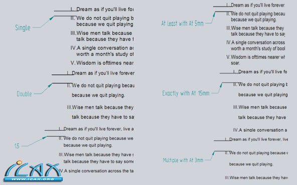 多个:设置的不同于单倍、1.5倍、两倍的行间距——0.06to132inches。