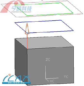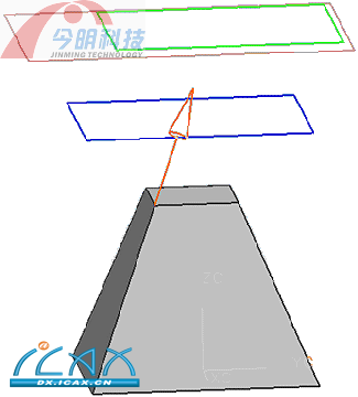 投影曲线:将曲线或点投影至平面、表面或基准面。 可以调整投影朝向指定的矢量、点或面的法向,或者与它们成一角度。投影曲线在孔或面边缘处都要进行修剪。投影之后,可以自动连结输出的曲线。如果需要用前一输出来手工创建另一连结曲线特征,这样操作就会减少一个步骤。如果创建关联投影曲线特征,可以隐藏或保持原始投影对象。对于非关联投影对象,除隐藏和保持选项之外,还可以删除或替换原始投影对象。如果创建关联投影曲线特征,则可以修改原始对象、指定的片体、面或平面,并且投影对象会更新以反映这些更改。选择沿矢量或与矢量成角度作为方向方法时,选定矢量将保持关联。如果更改矢量方向,投影方向将自动更新。下面用一个示例解释了关联过程。 使用沿矢量选项并选择拉伸特征中的一条竖直边作为沿矢量方向,从而将蓝色曲线在基准平面上投影成绿色曲线,如下〖图14-14〗 〖图14-14〗