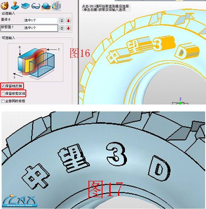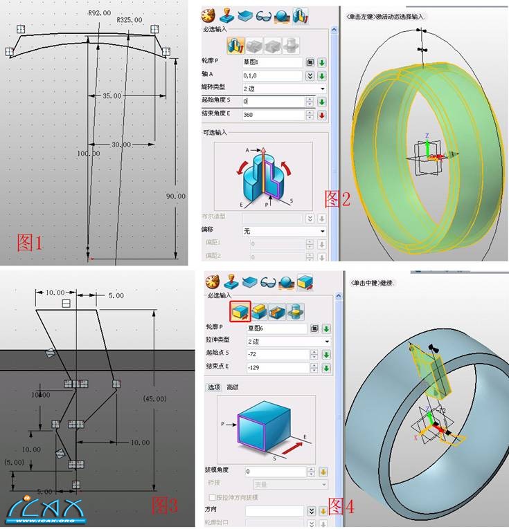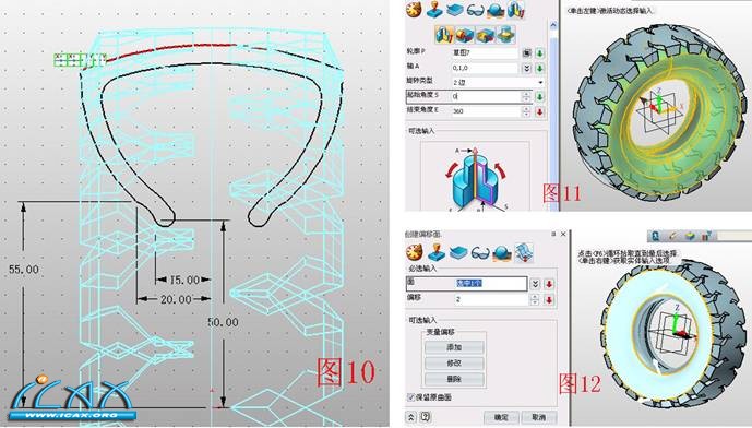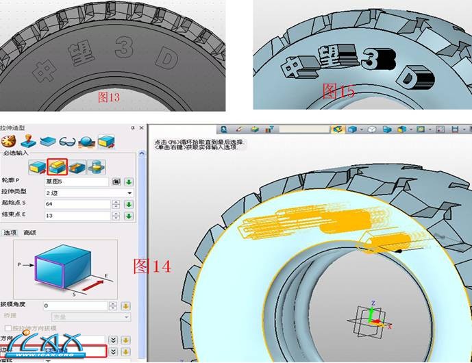 此次三维CAD教程分享的是轮胎的3D模型设计,通过中望3D的高效实体曲面混合建模能力,很快就可以完成轮胎的三维CAD模型设计。同时,本次三维CAD教程涉及了中望3D许多的功能命令,可以帮助三维CAD初学者快速了解中望3D,并且巩固所学的三维CAD设计知识,接下来就跟大家介绍具体的建模思路。 首先在YZ面创建草图1,绘制图1所示的图形,点击旋转命令,轮廓为草图1,轴为Y轴,如图2。在XY平面插入草图2,绘制图3所示的图形(轮胎的花纹可以根据需要自行设计),退出草图。点拉伸,选择基体,轮廓为草图2,起始点和结束点的设置如图4。 点击阵列—圆形,基体为拉伸后的造型,方向为Y轴,数目为20,角度为18,如图5;点击镜像,实体为图6所示的高亮部分,平面为XZ;点击移动—绕方向旋转,实体为镜像后的造型,方向为Y轴,角度为9,如图7所示;点击组合—减运算,基体为圆环,合并体为阵列和镜像后的造型,如图8所示,效果如图9。 在XY面插入草图3,绘制如图10所示的图形,退出草图后将草图3绕Y轴进行旋转,如图11;点击曲面—面偏移,面选择图12所示的高亮部分,偏移值为2,之后点击隐藏,先将偏移出的面隐藏。 下面在轮胎侧面添加文字。在模型表面创建文字,在很多建模过程中用得到,利用中望3D很容易实现。首先在XZ面插入草图4,点击文字,打上“中望3D”四个字,如图13,此时的文字是无法直接拉伸的,点击编辑—炸开,选择“中望3D”四个字后确定,此时的文字就可以进行处理了;点击拉伸,轮廓为草图4,参数如图14,注意“边界”选项点击图14高亮部分的面,效果如图15。 点击显示实体,将隐藏的偏移面显示出来,点击造型—修剪,基体为拉伸后的文字,修剪面为偏移面,如图16,注意红框部分的选择,效果如图17。 点击视觉样式—面属性,参数如图18,当然轮胎的颜色和相关的参数可以根据需要设置,最终效果如图19。 通过以上三维CAD教程,你也可以快速地掌握中望3D绘制轮胎CAD模型的方法,轮胎行业的朋友们也可以来中望技术社区中望3D交流区下载该教程的三维CAD图纸,分享交流三维CAD设计经验。同时,也可以通过中望3D独有的“边学边用”功能,制成公司内部培训教材,提高内部管理效率。 |