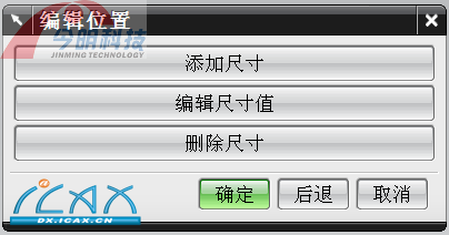〖图6-002〗编辑定位尺寸 ① 添加定位尺寸:用于增加成型特征的定位尺寸。 l② 编辑定位尺寸:用于编辑定位尺寸的数值。 ③ 删除定位尺寸:用于删除已定义的定位尺寸。 如果该特征还没有定位则会出现如下:〖图6-003〗所示的对话框,可以重新建立所需定位。
