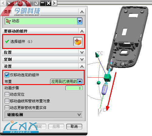 下面我们通过案例操作理解装配列: 打开练习文档amd_phone_assm.prt ,观察模型,在装配导航器中得知模型由两个子装配,其中ant_sub_assembly是天线子装配,我们将设定其打开和闭合的两种装配状态。 在装配导航器中选择amd_phone_assm,按右键选择“布置”,选择“编辑”定义排列,将Arrangement 1重命名为close,作为闭合状态。 ![]() 图ch03_19 在导航器中选择天线子装配,按右键选择“移动”命令,在移动组件对话框中设置栏内选择布置为“应用到已使用的”。 ![]() 图ch03_20 在装配导航器中选择amd_phone_assm,按右键选择“布置”,选择“编辑”定义排列,新建天线打开状态,在新建布置图标输入“open”,作为打开状态。并选择对话框右上角选择“使用”。 ![]() 图ch03_21 在导航器中选择天线子装配,按右键选择“移动”命令,在移动组件对话框中设置栏内选择布置为“应用到已使用的”。并在绘图区中选择操作手柄,沿X轴将天线组件移动至合适位置,作为其打开状态位置。 ![]() 图ch03_22 完成设置后,在装配导航器中可以通过使用“open”或“close”两种开合状态,在绘图区中则可以实现装配组件的不同装配状态。 ![]() 图ch03_23 本章小结: 在装配操作中,我们应掌握组件阵列,镜像装配和装配排列等命令,在实际装配的过程中能提高效率,减少劳动量,并方便快捷的修改装配结果。 |