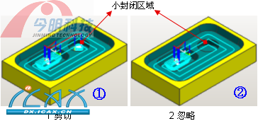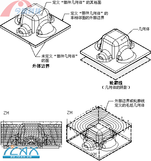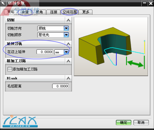 在【型腔铣】操作里,点击切削参数图标 ,弹出【切削参数】对话框,如图4-12所示。型腔铣的切削参数选项跟〖平面〗有所不同,相同的部分在此不再详细说明,针对性讲述型腔铣里特有的切削参数选项。下面分别介绍型腔铣里的切削参数选项。 ![]() 图4-12 型腔铣切削参数 ⑴. 延伸边界:沿切线方向延伸开放腔体的刀轨。前提条件一定要定义了切削区域面才会起到作用。刀轨延伸如图4-13所示。 ![]() 图4-13 型腔铣刀轨延伸 ⑵.余量:在型腔铣操作里,切削参数选项中的“余量”选项卡,跟平面铣加工有所不同,如图4-14所示。其中多“使用底部面与侧壁余量一致”的选项。当这选项打勾时,将不会有“部件底部面余量”选项,如不打勾将可以分别设置“侧壁和底部面”余量。在此操作里,分别设置部件侧面余量=0.35,部件底部面余量=0.15,其他的参数选项为默认值。 ![]() 图4-14 型腔铣余量选项 ⑶.空间范围:此选项卡中包含了,毛坯(Blank)、刀具夹持器、小面积避让、参考刀具和陡峭四类选项,各选项中还包含相应内容,如图4-15所示。下面将介绍各参数选项的内容。 ![]() 图4-15 空间范围 修剪由是根据所选“部件几何体”的外边缘(轮廓线)来创建“毛坯几何体”;当你没有明确指定“毛坯几何体”的情况下识别出型心部件的“毛坯几何体”。 使用部件几何体的轮廓来生成刀轨,方法是:沿部件几何体的轮廓定位刀具,并将刀具向外偏置,偏置值为刀具的半径;可以将轮廓线当作部件沿刀轴投影所得的“阴影”。如图4-16所示。 ![]() 图4-16 修剪轮廓 处理中的工件用于指定经过一次操作后余下的材料(剩余材料)。包括使用3D和使用基于层的两种类型。当处理中的工件设定为使用3D时,此时在【型腔铣】操作对话框中,〖几何体〗选项卡里“指定毛坯”选项将会被前一个 IPW 图标 所替换。“使用基于层的” 选项是利用先前型腔铣加工剩余材料,这些先前的操作被称作参考操作;“基于层的 IPW”仅限于“型腔铣”或“深度铣”操作,且使用与先前操作相同的刀轴。余料铣削和参考操作必须属于同一几何体组。 使用刀具夹持器选项允许用户控制是否使用刀具夹持器来参与计算刀轨,当使用刀具夹持器参与计算刀轨,所创建的刀具的时候一定要加与刀柄的创建。在计算刀轨当中,主要是利用刀柄与模型几何部件计算,如果因为刀具装夹的长度不够的时候,刀柄跟部件碰撞的位置自动会避开,此乃使用刀具夹持器的作用。 小面积避让允许您指定如何处理模型的腔体或孔之类的小特征。在小封闭区域选项里分为“剪切”和“忽略”两个选项,操作内容如图4-17所示。 ![]() 图4-17 小面积避让 参考刀具通常是用来先对区域进行粗加工的刀具,系统计算指定的参考刀具剩下的材料,然后为当前操作定义切削区域。“重叠距离”是将待加工区域的宽度沿切面延伸指定的距离;按照参考刀具的直径沿切面定义的区域宽度;只有当您为参考刀具指定了偏置时,重叠距离才可用。 注:必须选择一个直径大于当前操作所用刀具的刀具。应用的重叠距离值限制在刀具半径内。 在【切削参数】对话框里,除了余量要设置之外,其他的参数选项均为默认值。 |