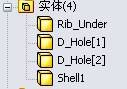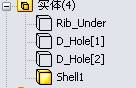 按住Shift键,选择Rib_Under、D_Hole[1]和D_Hole[2],单击右键,从弹出的快捷键中选择【隐藏实体】。