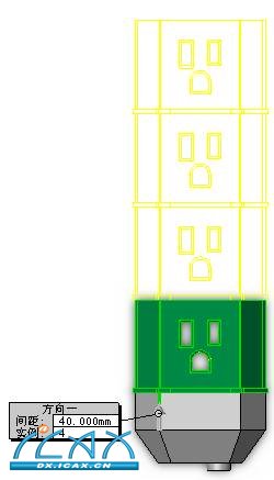 使用【线性阵列】工具,创建实体“PowerBlock”的4个阵列实例,相距40。000mm,如图1-38所示。