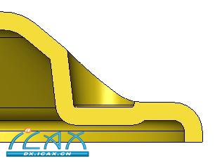 利用【压凹】特征,可以在【目标实体】的薄壁上生成一个或多个与【工具实体】的轮廓相似的外形。用户可以指定压凹的厚度和间隙。