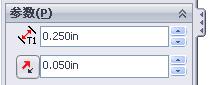在【参数】选项组中设置压凹参数,厚度为0.250in,间隙为0.000in,如图1-43所示。