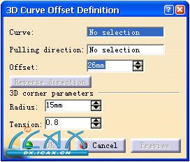 单击“3D 曲线偏移 (3D Curve Offset)” 指令,出现“3D 曲线偏移定义 (3D Curve Offset Definition)”对话框,如图4-255所示。