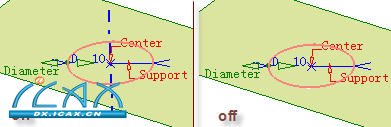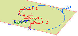 提示: ● 定义的支持面必须是包含圆心点或轮廓限制点的平面,否则系统将无法计算。