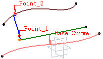 2.基曲线 (Base Curve)。使用该连接曲线的类型时,“连续 (Continuity)”类型、“反转方向 (Reverse Direction)”按钮和“修剪元素 (Trim elements)”选项均被停用。这里选择“草图.1(Sketch.1)”作为参考的“基曲线 (Base Curve)”,选取“直线.1(Line.1)”的端点作为创建连接曲线的第一曲线(First Curve)参考“点(Point)”;选取“点.2(Point.2)”作为创建连接曲线的第二曲线(First Curve)参考“点(Point)”;