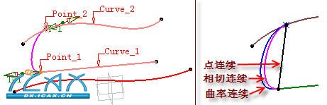 图4-283列出了预览中的结果与“点 (Point)”、“相切 (Tangency)”和“曲率 (Curvature)”三种连续类型的结果。