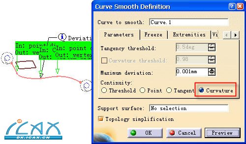 开启“连续(Continuity)”类型中的曲率选项然后单击预览如图4-414所示。
