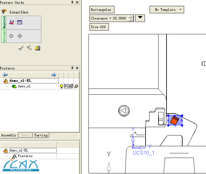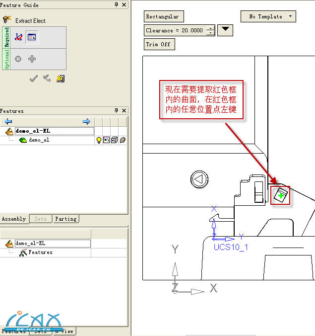 Trim On配合Blank Offset(毛胚偏置)使用毛胚进行一个偏置后对提取的曲面进行修剪。
