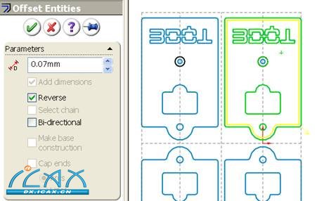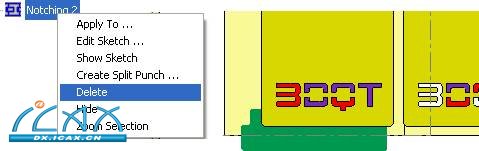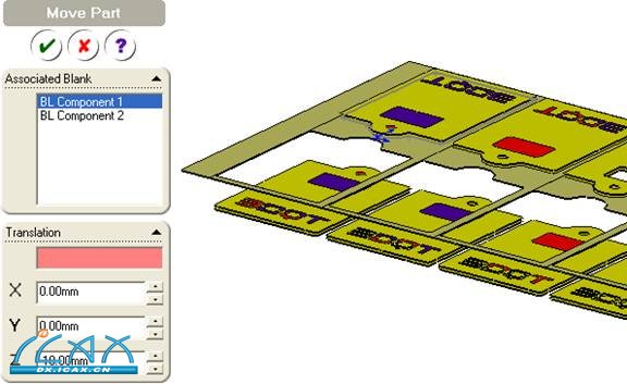 1. 单击另存为保存名Blankoff.sldprt 2. 从排样设计管理器中 删除多个切料冲头,我们想删除除切料冲头1和引导针之外的所有冲头。 3. 从排样特征管理器中RMB切料冲头1,选择编辑草图。 4. 删除所有的草图实体。 5. 选择上层平面,偏距0.07mm作为切料冲头的切料间隙。 6. 确认OK完成后退出草图。 8. 分别重命名2个切料特征为Blank1和Blank2。 9. 应用Blank1和 Blank2到最后一个工步。 10. 从排样特征管理器中RMB未加式特征 ,选择X成形零件…沿Z方向向下移动BL Component 1距离为10mm。 11. 单击OK完成。 12. 对BL Component 2也重复上步操作 13. 应用Move Part 1 和 Move Part 2到最后一个工步。 14. 保存文档。 |