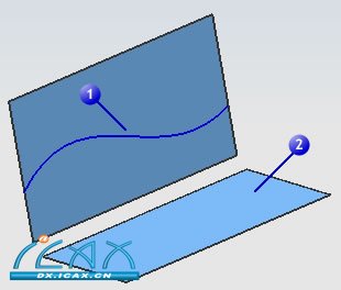 创建面倒圆,让其沿着下面1处的曲线与面1相切,并与2处的面相切,结果如右图所示。 图ch18_15 1. 在特征操作工具条上,单击面倒圆 ,或选择插入→细节特征→面倒圆。 2. 在面倒圆对话框中,从类型列表中选择滚动球,并保留默认圆形倒圆横截面形状。 3. 在将倒圆应用于模型之前,单击预览复选框以查看预览。请注意,NX 仅在您指定足够的参数后才创建预览。 4. 单击第一个面集或体集。选择意图规则在对象选择过程中应用。如果需要反转集的法向,请在图形窗口中双击箭头,或单击对话框中的 反向。 |