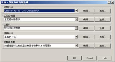 10.3 DOE分析 实验设计(Design of Experiments,简写DOE)分析按照优化方法通过设计一系列的实验,用最少数量的实验完成所有实验参数在不同实验水平上组合的全部实验,并确定出各个实验参数对实验目标的影响度的多少,因此可以调节实验目标影响最大的实验参数获得较好的实验结果,同时还可以得到各个实验参数最佳组合方式。 因此与传统的实验方法相比,DOE分析不仅节省了时间、精力和降低了成本,而且可以利用最少的实验获得覆盖面非常广泛的实验结果,从而得到产生最佳效果的实验参数组合。 在AMI中的DOE分析提供了两种实验设计方法:Taguchi和Factorial实验设计。Taguchi方法通过运行数目较少的一组优化实验,确定出对实验目标的影响最大的实验参数。在Taguchi方法中是将各个实验参数作为独立变量进行实验的,没有考虑参数之间可能存在的相互影响。Factorial方法运行的实验数目要大于Taguchi方法中运行的实验,它用以确定实验参数的最佳实验水平组合。 因此,在进行实验设计对案例进行优化时,一般先使用Taguchi方法,然后再使用Factorial方法。AMI的优化分析中包含对填充的优化(Design of Experiments(Fill))和对流动的优化(Design of Experiments(Flow))。进行这两个实验设计分析时,首先对填充或流动设置相关工艺参数,然后设置DOE的实验参数。 10.3.1 对填充的优化 下面讲解填充的优化分析的操作,操作如下。 1.对工程方案进行重命名 2.设置分析类型 设置分析类型的步骤如下。 (1)双击“dvd _方案(DOE分析)”方案,激活该方案,如图10.26所示。 (2)选择【分析】|【设置分析序列】|【实验设计(充填)】命令,弹出【提示】对话框,如图10.27所示,单击【删除】按键,完成分析类型的设置,结果如图10.28所示。 图10.26 成型窗口分析类型 图10.27 【提示】对话框 设置实验设计(充填)分析条件的步骤如下。 (1)选择【分析】|【工艺设置向导】命令,弹出【工艺设置向导-充填设置】对话框,如图10.29所示。当然用户可以采用默认的工艺范围,对应的分析范围AMI将根据成型材料相关数据自动确定。本案例采用如图10.29中的设置。 图10.29 【工艺设置向导-充填设置】对话框 (2)用户还可以对分析条件进行更高级的设置。在图10.29中,单击【高级选项】按钮,弹出【充填+保压高级选项】对话框,如图10.30所示。 图10.30 【充填+保压高级选项】对话框 (3)单击OK按钮,返回到【工艺设置向导-充填设置】对话框,单击Next按钮,弹出【工艺设置向导-DOE设置】对话框,如图10.31所示。本案例采用AMI默认值。 图10.31 【工艺设置向导-DOE设置】对话框 (4)用户还可以对分析条件进行更高级的设置。在图10.31中,单击【高级选项】按钮,弹出【DOE高级选项】对话框,如图10.32所示。本案例采用AMI默认值。单击OK按钮,返回到【工艺设置向导-DOE设置】对话框,单击【Finish】按钮,完成成型窗口设置,结果如图10.33所示。 图10.32 【DOE高级选项】对话框 图10.33 完成DOE工艺设置 DOE(Fill)实验参数设置参数意义如下。 在DOE实验类型中,用户可以根据自己的需要选择单独进行Taguchi方法或Factorial实验还是将Taguchi和Factorial实验结合共同进行。当用户选择了首先进行Taguchi实验,然后进行Factorial实验的结合方式选项后,右侧会出现相应的文本框,要求用户输入实验中的参数个数。Moldflow默认的参数为3个,它们是由Taguchi实验分析出的对填充过程中最重要的3个工艺参数。用户可以选择2~6之间的整数作为实验参数个数。实验参数越多,相关的实验方法越复杂,计算量越大。 接下来,依次设置5个参数在实验中的状态。在下拉列表框中,提供了3个选项,即不变、自动和指定。 “不变”表示在各个实验中,参数值是恒定的,不发生变化。“自动”表示在AMI会自动确定出参数的变化范围,划分参数的实验水平,在不同的实验中采用。用户还可以按照特定的要求对参数进行水平划分。如果选择“指定”,则按照右侧出现的文本框,填入相应的变化百分比的大小,实验分析就会按照该值划定实验水平。 Expand/Compress Injection Profile选项用于在实验中按照某个百分比均匀的增大或减小所有的值。其默认选项为Do not change。Thickness multiplier的作用类似于Expand/Compress Injection Profile,用于按照某个百分比均匀的增加或减小整个制件的厚度。其默认选项为Automatic。 用户可以单击右下方的DOE Advanced Options按钮查看实验设计分析中的Moldflow中进行判断的质量准则。 用户可以在DOE Advanced Options对话框中设置相关参数在判定成型工艺条件优劣性中所占的权值。每个参数的默认权值都是1。如果用户想增大某个参数在成型条件中的重要性,那么就在右侧的文本框中填入一个大于1小于10的值。需要注意的是,由于这些参数之间存在相互影响,增大某个参数的权值则有可能导致相关参数性能变坏,所以AMI默认赋予每个参数相同的权值。 4.分析计算 双击案例任务窗口中的“开始分析”图标,或者选择【分析】|【开始分析】命令,弹出【选择分析类型】对话框,如图10.34所示。单击【确定】按钮,程序开始运行。等待程序运行,可以查看分析的过程和分析的进度,与分析完成通过查看日记的内容一样。图10.35是分析过程中的内容,在屏幕显示中,可以很详细地看到DOE中的实验参数以及实验水平的划分。运行完成后,弹出【分析完成】对话框,如图10.36所示。单击OK按钮,退出【分析完成】对话框。 5.分析