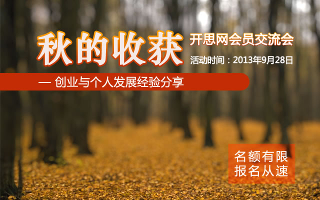 四、 报名会员注意事项 1)活动报名时间即日起至2013年9月27日止。 2)活动名额有限,只接受前报名30名会员。 3)参加活动费用:每人100元(包含茶点与晚餐费用)。 4)请报名时备注出行方式(开车/坐车),并付上出发地点,以便我们安排会员坐便车。 5)凡成功报名参加活动的开思网会员,奖励开思大米与活动积分,还有神秘礼物!